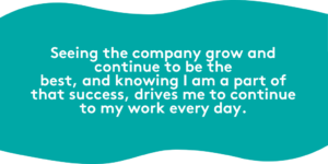 Seeing a team member overcome obstacles and grow into their role is very rewarding, especially knowing I had some impact on that developmentSeeing the company grow and continue to be the best, and knowing I am a part of that success, drives me to continue to my work every day.