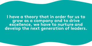 I have a theory that in order for us to grow as a company and to drive excellence, we have to nurture and develop the next generation of leaders. Otherwise we’re done, because there would be no one to fulfill those roles,” says Suzanne. They don’t teach this in school.”