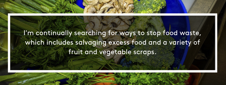 We met with the facility’s administrators and veterinarians and found that our scraps were a match for the animals’ diets. After only two months, the program has met our goals and exceeded those of our client. We’ve reduced our food waste by a whopping 350 pounds each month while improving the animals’ diets and saving money for the college.