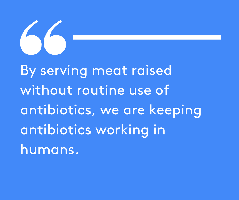 By serving meat raised without routine use of antibiotics, we are keeping antibiotics working in humans.