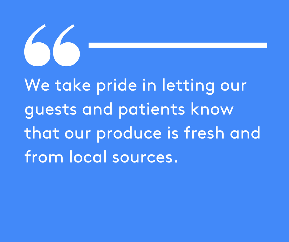 We take pride in letting our guests and patients know that our produce is fresh and from local sources, so we publicize our local farms through photographs and descriptions in our cafes. After all, terms like farm-to-table, locally sourced, and sustainably raised are not words most would expect to see in a hospital cafe.