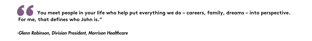 “Whenever there was a major issue with an account, John would say, ‘We are all in this together,'” says Regional Vice President Suzanne Schoby. “John had our backs and made everyone realize we were not alone. He created a culture of support that enabled us to thrive. It’s a phrase I still repeat to my team whenever times get a little tough.”