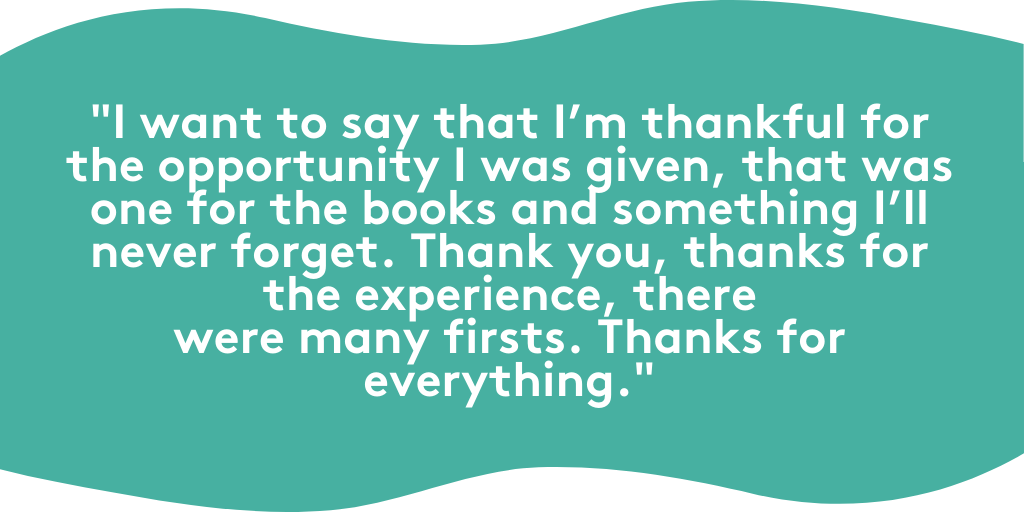 Kyria: I want to say that I’m thankful for the opportunity I was given, that was one for the books and something I’ll never forget. Thank you, thanks for the experience, there were many firsts. Thanks for everything.