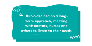 Rubio decided on a long-term approach, meeting with doctors, nurses, and others to listen to their needs. “It took six months to get the heartbeat of the organization, but slowly, we started to meet their requests. As we continue to perform well, the staff began asking the Chef for his recommendations instead of making demands.”