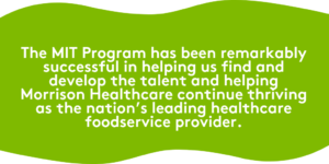 The MIT Program has been remarkably successful in helping us find and develop the talent (you!) and helping Morrison Healthcare continue thriving as the nation’s leading healthcare foodservice provider.