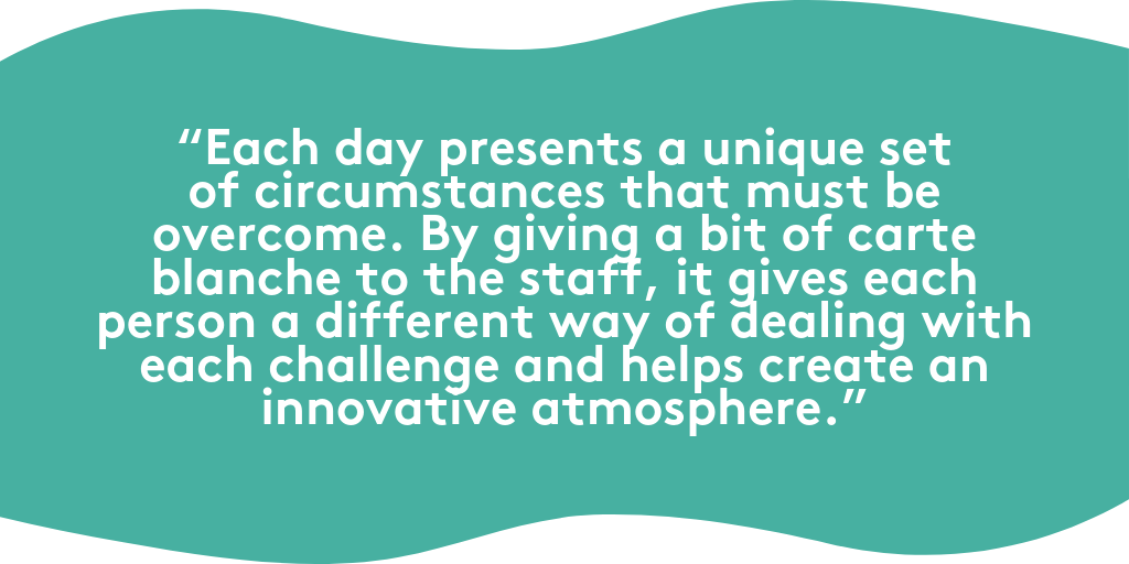 He also credits his kitchen staff for their strong work ethic and flexible approach to the job. “Each day presents a unique set of circumstances that must be overcome. By giving a bit of carte blanche to the staff, it gives each person a different way of dealing with each challenge and helps create an innovative atmosphere.”