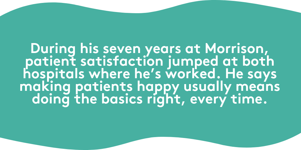 During his seven years at Morrison, patient satisfaction jumped at both hospitals where he’s worked. He says making patients happy usually means doing the basics right, every time.