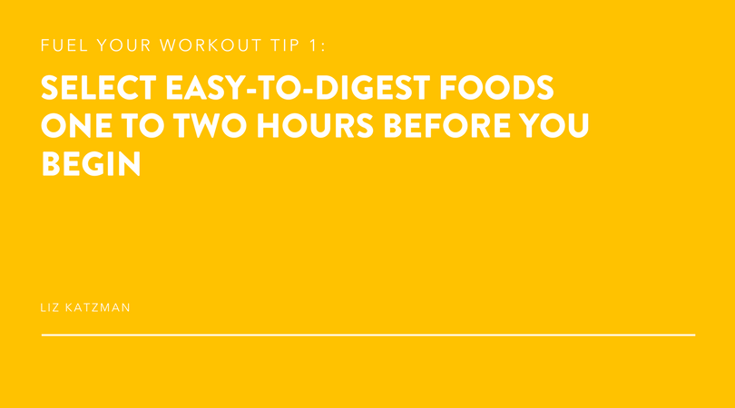 Keep in mind, what follows is general advice and does not take into consideration specific needs or medical conditions for which you may be receiving treatment. Also, foods you may tolerate before, during, and after workouts can vary depending on your own GI system and type of workout. And, if you are taking up an exercise program after a period of inactivity, be sure to check in with your primary care physician.