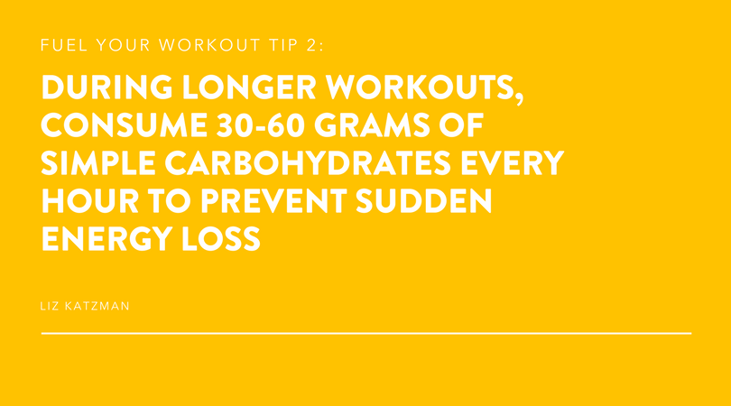 During longer workouts, consume 30-60 grams of simple carbohydrates every hour to prevent sudden energy loss or “bonking.” Select quick, easy-to-digest carbs like commercial gels, jelly beans, fruit, or pretzels. Add some protein into the rotation if your stomach can tolerate it.