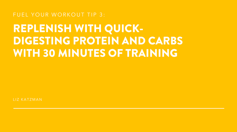 After training, you will need to replenish your glucose stores and prevent muscle depletion. A combination of quick-digesting protein and carbs is essential within 30 minutes. Select snacks that are in a ratio of 2 carbs to 1 protein after strength training, but bump that up to 4 carbs to 1 protein after endurance training.