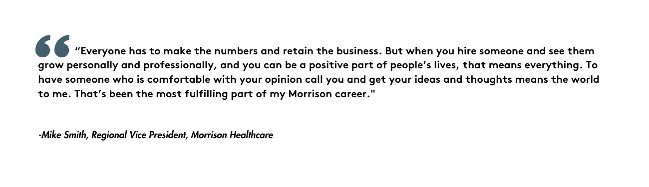 After a brief stint at a payroll company, Smith wanted to rejoin his former colleagues. He placed a call to Rob Cooperman, then a recruiter at Morrison Healthcare and a colleague from his Morrison Cafeterias days.