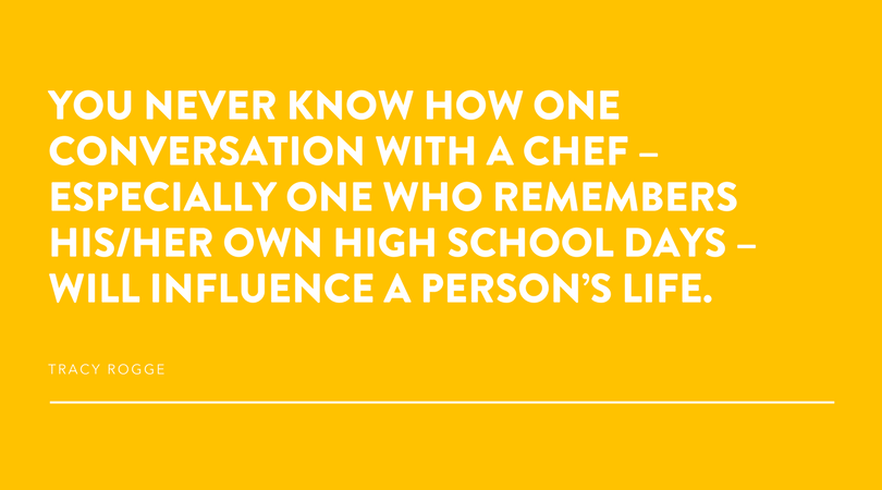 These kinds of events can be pivotal in inspiring young people to pursue a foodservice career. Many of these students will not attend college and are seeking other options. You never know how one conversation with a chef – especially one who remembers his/her own high school days – will influence a person’s life.