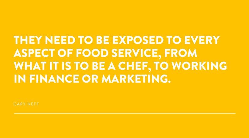 “They need to be exposed to every aspect of foodservice, from what it is to be a chef, to working in finance or marketing,” said Neff. “There are a lot of different avenues they can take, so they need to find out how they can turn their passion into a career. If we can help them do that, they may remember us and someday become part of our team.”