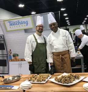 The students met people from 30 different restaurants and foodservice businesses. Four of these companies were a part of Compass Group: Levy, Morrison Community Living, Thompson Hospitality and of course, Morrison Healthcare. Busloads of juniors and seniors from various metro Atlanta high schools watched our chefs put on a show and demonstrate their expertise right next to representatives from other brands like Arby’s, Taco Mac and other fast-food restaurants who were also hosting exhibits at the Expo. Our chefs prepared chicken and shrimp rice bowls and other hot dishes but just as valuable, made time for one-on-one conversations with the students about the importance of having a passion for a job and the career opportunities available for them at Morrison Healthcare.