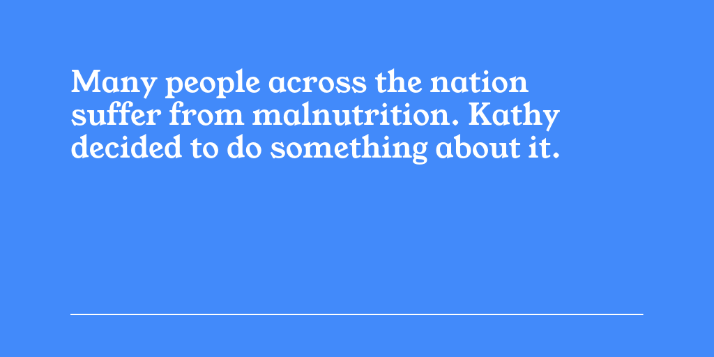 Many people across the nation suffer from malnutrition. Kathy Irwin decided to do something about it.
