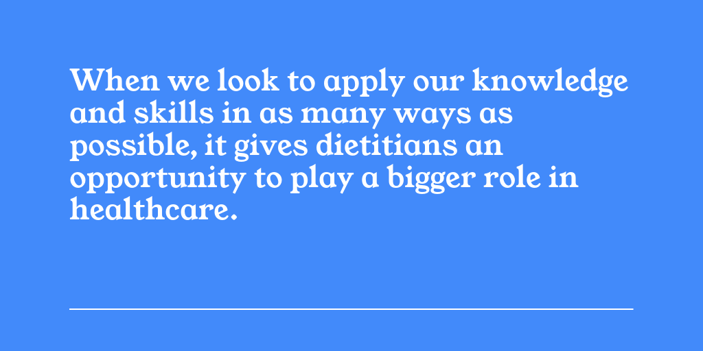 “When we look to apply our knowledge and skills in as many ways as possible, it gives dietitians an opportunity to play a bigger role in healthcare,” Kathy says. “This will only help hospitals better their communities and improve patient care.”