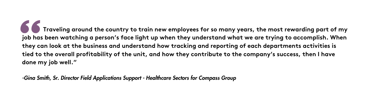 At the time, eFinance was developed, Gina says Morrison Healthcare had less than $500 million in annual revenue. Today the system serves Morrison Compass One in MHC, TSS, and CCL with over $5.0 billion in annual revenue.