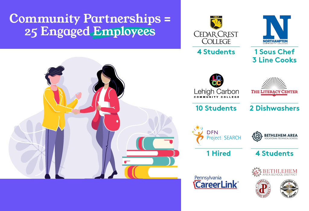 LVHN’s untraditional approach to staffing has already seen significant successes. In one case, a college student was promoted to a dietetic role and is already putting her degree to use. In all, the program partners with four local colleges and five high school programs. On the community group side, four primary organizations have provided excellent candidates for food and nutrition roles.