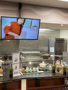 The demos are held between 11 a.m. and 2 p.m., giving everyone time to stop in during their lunch break, even if it’s just for a few minutes. Each cooking demo only takes a few minutes, so if a large group of dietitians or nurses stops by, I can give them a full session in just a few minutes.