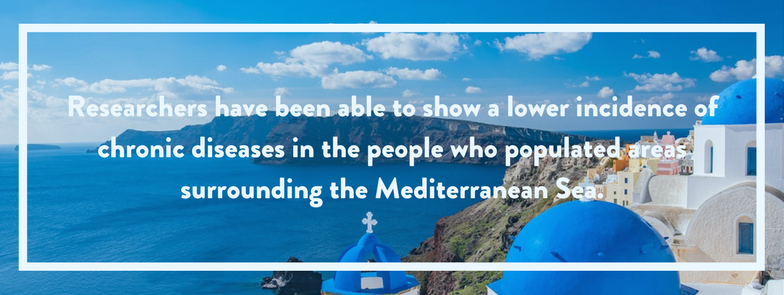 So let’s back up. From where did the idea for the Mediterranean Diet come from and how do we know it’s good for us? The name spoils the mystery of its origins but as for its effectiveness, over time, researchers have been able to show a lower incidence of chronic diseases (like cardiovascular disease, obesity, type 2 diabetes, Alzheimer’s dementia and metabolic syndrome) in the people who populated areas surrounding the Mediterranean Sea.
