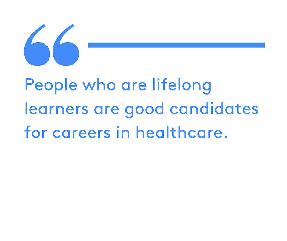 Because of the constant improvements in medicine, people who are lifelong learners are good candidates for careers in healthcare. Research is published regularly and there are constant advances in new treatment techniques for medical conditions and diseases. Healthcare workers who are avid readers and seek out opportunities to learn from and collaborate with others will continuously learn new ways to help people and make a difference in their lives.