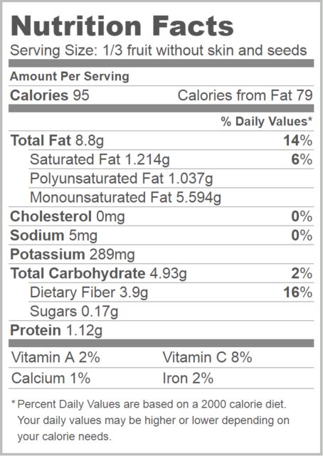 One-third of an avocado provides 3g of fiber, which helps us feel full faster and for a longer period of time. This helps us maintain a healthy weight and a healthy heart.